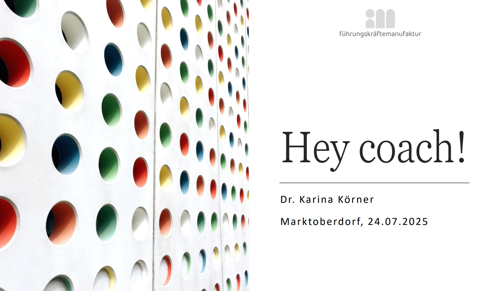 Ein Vortrag, der ermutigt, Führung neu zu denken, weg vom reinen Steuern und Kontrollieren, hin zum Begleiten, Entwickeln und Begeistern. Wer „Hey Coach!“ ruft, erwartet keinen perfekten Anleiter, sondern jemanden, der an die eigenen Möglichkeiten glaubt.